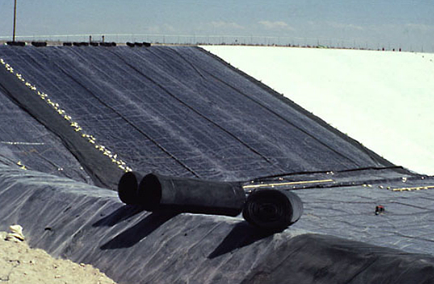 水平防滲技術就是平行于地面構建人工防滲層,可采用天然防滲和人工防滲兩種方法。天然防滲是利用填埋場的自然隔水層進行防滲,當場底為完整的不透水層,且滲透系數和厚度滿足相關規范標準時,可采用天然防滲;人工防滲是平行于地面鋪設人工襯層進行防滲。常用到人工合成防滲材料有HDPE膜、膨潤土墊等。目前已廣泛用于環保、化工、冶金、水利、景觀等行業。